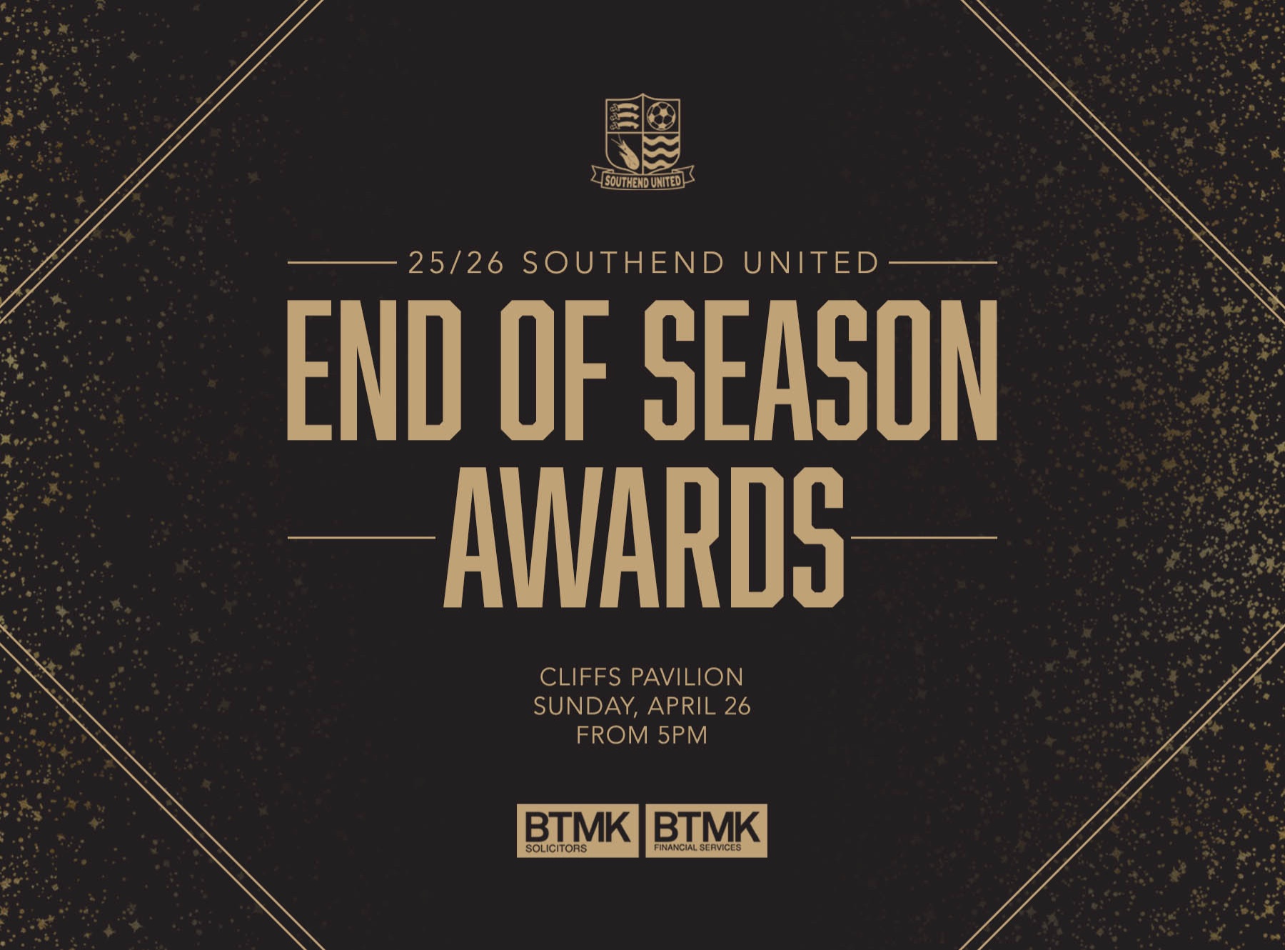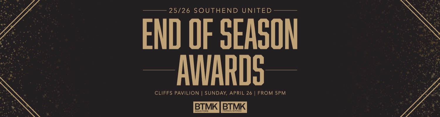 Join Southend United for the 2025/26 End of Season Awards sponsored by BTMK Solicitors & BTMK Financial Services held at The Cliffs Pavilion.